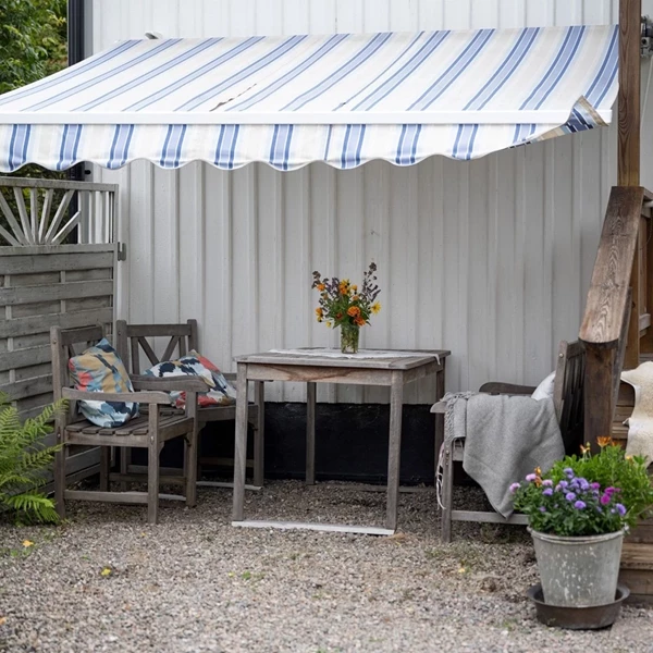 Garaget är fristående och här får en bil plats att parkera och även förvaring av diverse. Intill finns trevlig trallbelagd uteplats.