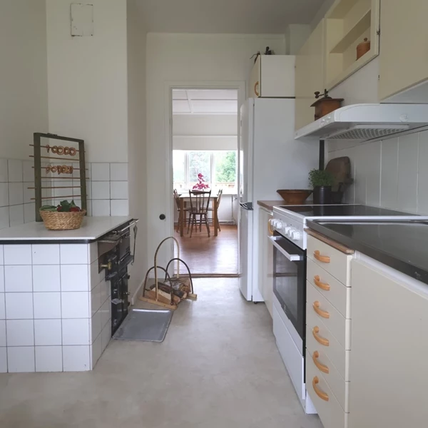 Västertun ligger beläget på en kulle med blandad bebyggelse av äldre charmiga trähus, nyare villor och lummiga fruktträdgårdar. Huset passar ypperligt för den mindre barnfamiljen, likväl som till dig som söker ett mindre hus med utrymmen för hobby och kreativitet, eller den odlingsintresserade för trädgården har många möjligheter. Invändigt erbjuds på bostadsplanet två bra sovrum, bägge med klädkammare och vid behov kan dessa rum enkelt bli tre sovrum. Charmigt kök med ljust målade skåpsluckor, vitvaror såsom spis, spisfläkt samt kyl/frys. Fungerande vedspis från begynnelsen och plats för mindre matbord vid fönstret. Allrummet flödar i ljus och energi från flertalet fönster i hela tre vädersträck och härifrån nås även balkongen i soligt sydvästläge vart du njuter av det höga läget och har utsikt mot den lummiga trädgården med flertalet fruktträd. Via takad farstukvist nås hallen med plats för avhängning av ytterkläder och skor och intill ligger duschrummet som är helkaklat med golvvärme. Här finns duschplats med glasväggar, wc, tvättställskommod och vädringsfönster.