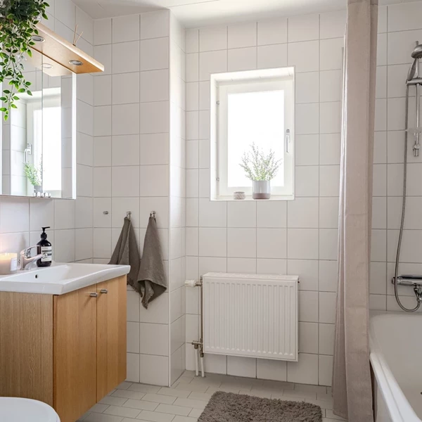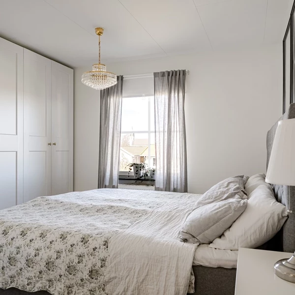 Samtliga rum har genomgående ekparkettgolv och nästan hela bostaden är smakfullt ommålad, vilket skapar ett enhetligt och modernt helhetsintryck.