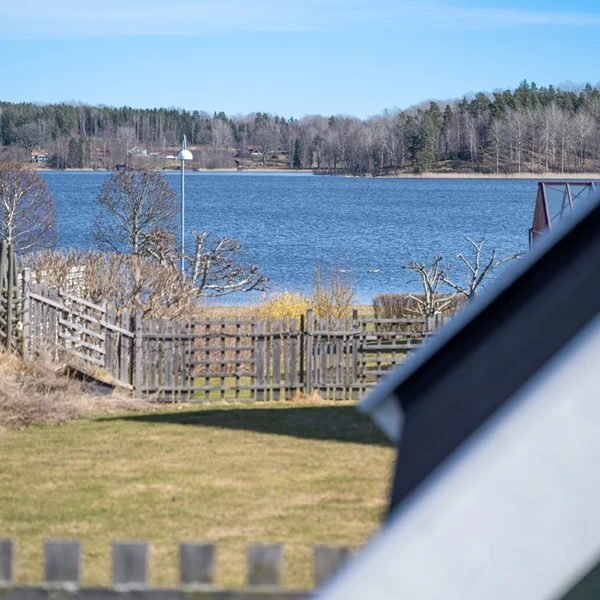 Tomten är en av de större i området och erbjuder fina gräsytor med utsikt mot sjön. Här finns lekstuga för de mindre barnen samt en skyddad uteplats högre upp på tomten, omgiven av syrenhäckar. Asfalterad uppfart med parkeringsmöjligheter samt carport med isolerat förråd.